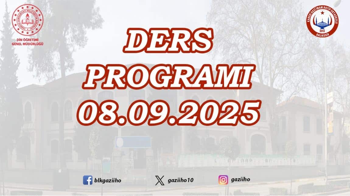 08 EYLÜL 2025 TARİHİNDEN İTİBAREN GEÇERLİ DERS PROGRAMIMIZ