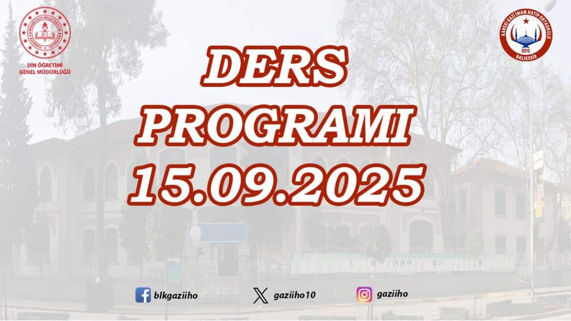 15 EYLÜL 2025 TARİHİNDEN İTİBAREN GEÇERLİ DERS PROGRAMIMIZ